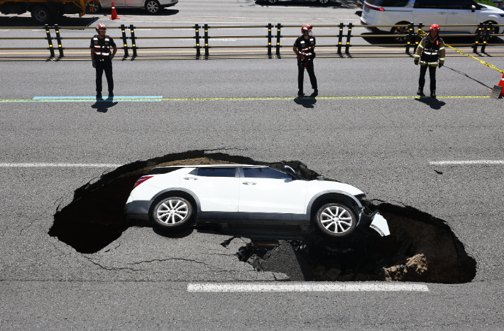 대낮에 서울 한복판 도로가 꺼지는 싱크홀이 발생해 달리던 차량이 빠지는 황당한 사고가 발생했다. 이 사고로 80대 차량 운전자와 70대 동승자가 다쳤고, 교통 정체로 시민들이 불편을 겪었다.